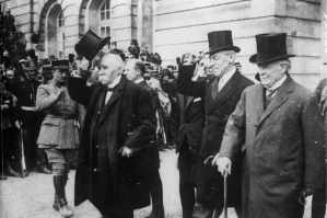 The final act of Versailles was overshadowed by German’s refusals to sign. Political chaos reigned in Germany. The government folded and no politician was prepared to put his signature to what was seen as a dishonourable capitulation. Without a government there could be no Treaty. The Germans said that if the offending articles were removed, then they would sign. Paris refused, threatening to start Foch’s armies marching again. Germany backed down, sending two subordinate ministers to sign.